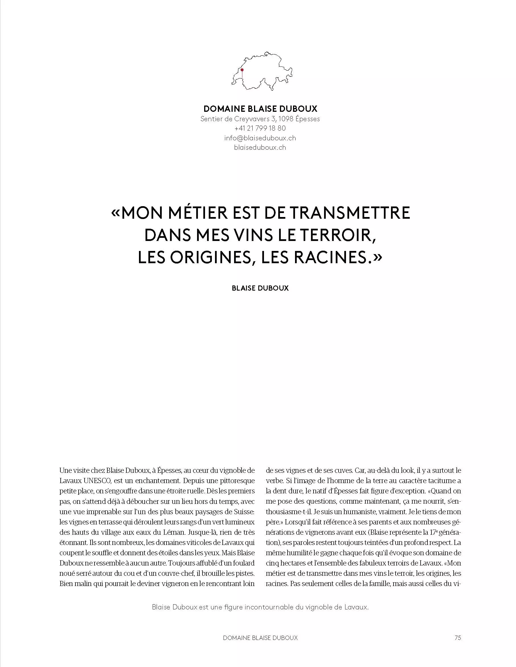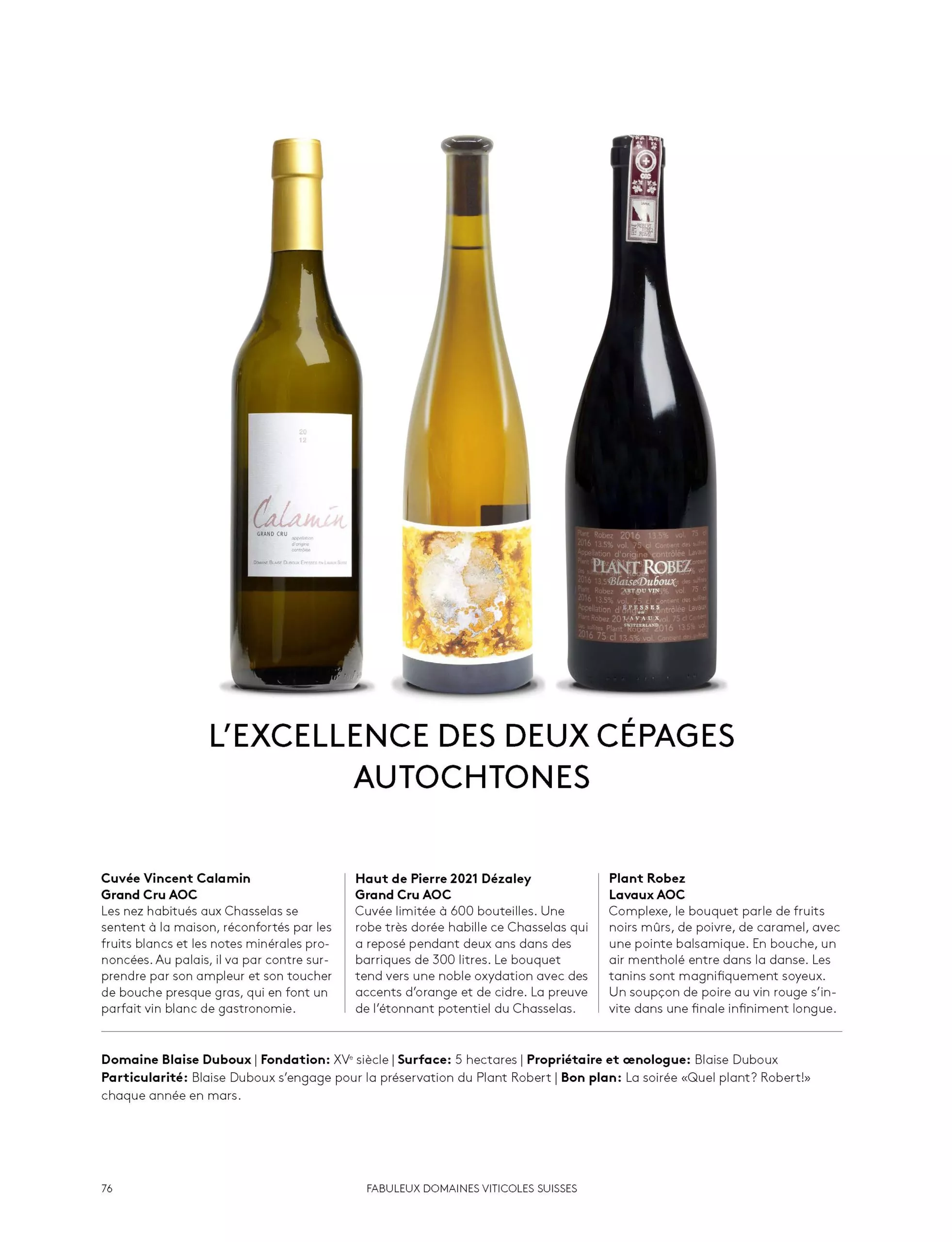 Le Domaine Blaise Duboux distingué parmi les « Fabuleux domaines viticoles suisses » par Vinum